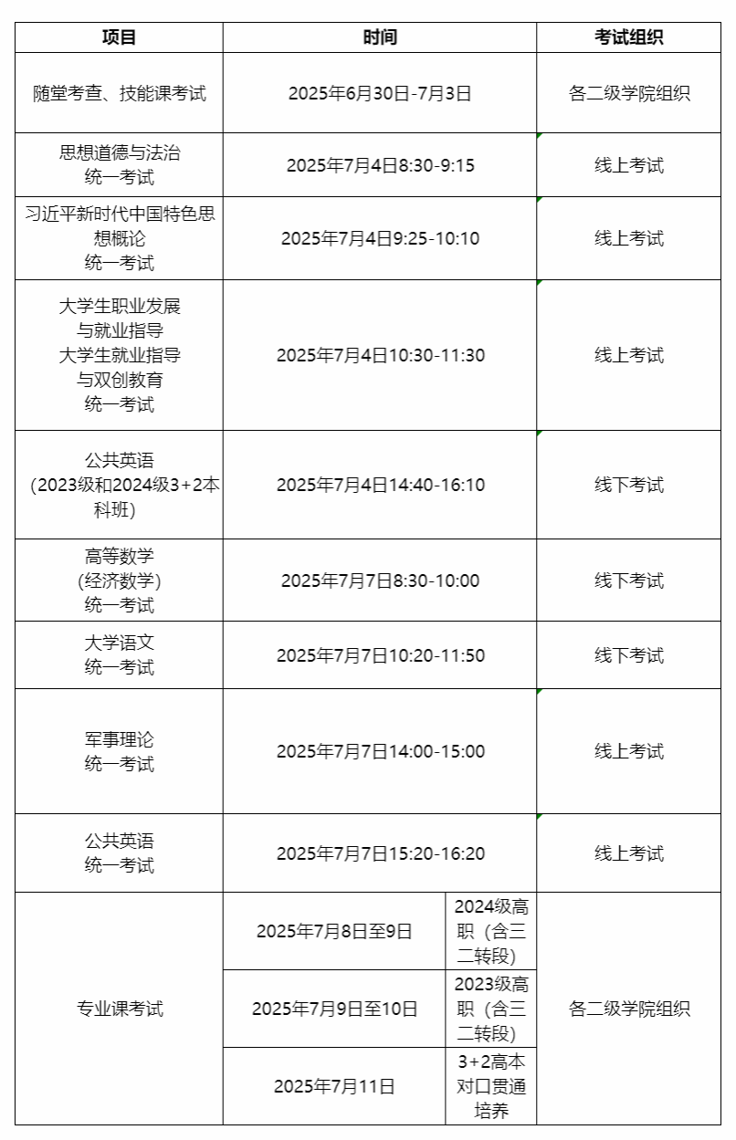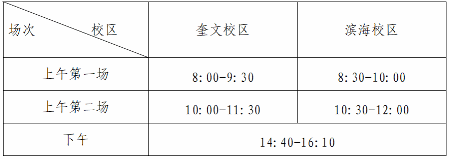 考试时间安排表